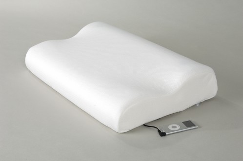 Fabricada en espuma viscoelástica con dos inapreciables y pequeños altavoces incorporados durante el proceso de fabricación.