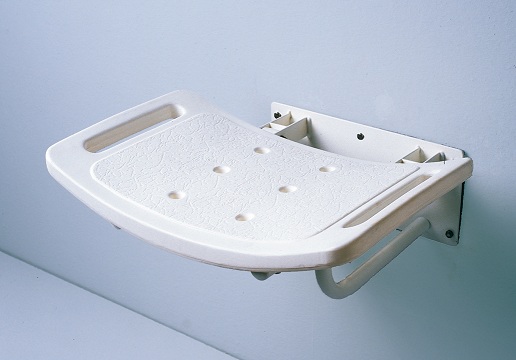 Asiento de plástico de forma cóncava con desagüe y asideras integradas para mayor sensación de seguridad.