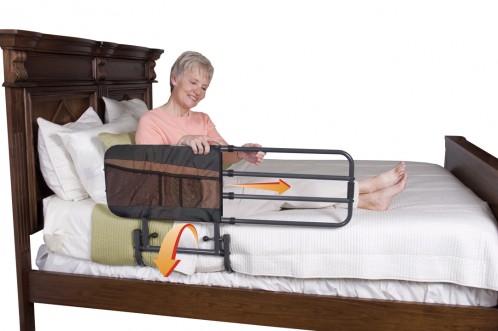 Esta barandilla es extensible para alargarla o acortarla a conveniencia, y además se puede abatir para salir y entrar en la cama con más comodidad. Cuenta con unos prácticos bolsillos para guardar las cosas que se desea tener a mano.