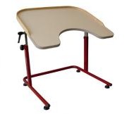 Su estructura está fabricada en acero pintado y cromado, con un tablero laminado y marco de madera, con abertura delantera en forma de semicírculo para facilitar el trabajo del usuario.